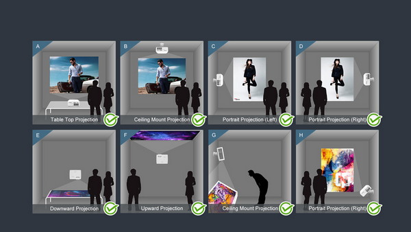 镜头位移功能,可灵活安装于沙发侧面或天花板,避免正对观众的光污染,解决传统投影机“必须居中摆放”的痛点。