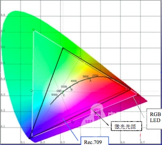 色域:激光光源色彩最接近RC709国际电视标准,亮度高,色彩真实,是目前显示领域中还原效果最高端的显示技术。还原肉眼识别范围中真实逼真的自然画面,和浓郁的色彩画面明显区别开来。