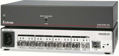 Extron 电子公司很高兴地推出了最新的 FOX II RS 104,它是一款 4 端口 RS-232 插入器,可通过光纤将控制信号长距离传输至远端信号源和终端设备。每个端口都能与 Extron FOX II 或 FOX 系列发送器或接收器进行双向光纤连接,用于控制数据的插入和提取,从而保持视音频信号的连续直通链接。在需要通过光纤长距离传输视音频和控制信号的中央控制系统应用环境,FOX II RS 104 是理想之选。