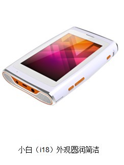 小白(i18)身材修长纤巧,为144mmX77mmX22mm,既便于携带,又节省空间。白色外表悦目可人,触手感圆润细腻,单手即可以拿握。小白自带5寸触摸幕,平时在不开启投影功能的情况下,如同PAD进行各种操作。