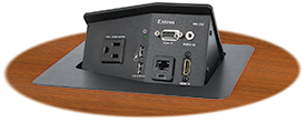 Extron HSA 接线盒把实用性和美观性很好地融合在一起。它提供 3 种配置,能适用于大多数的房间设计和家具款式。紧凑、带有视音频和网络连接的上支起式接线盒;上支起式并可配置的模块化接线盒;以及可从桌子任意一侧进行信号连接和电源接入的垂直升降