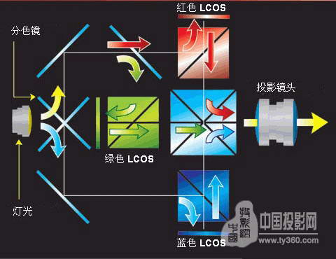 在当前的投影机市场上,LCD和DLP仍然占据了绝大多数的投影机市场份额,但LCOS的异军突起也不容忽视。LCOS的英文全称是LiquidCrystalonSilicon,即硅上液晶,通过名字便可以知道这是一项从LCD 发展起来的技术,可以看作是取LCD和DLP两家之长的改良型技术,其基本原理和LCD相似,区别在于它利用的是与DLP相似的反射式架构。