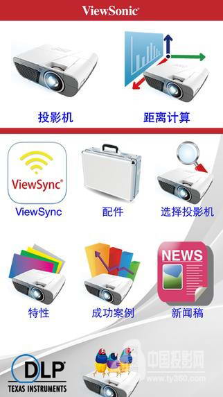优派根据用户的使用习惯,将各类信息结构优化,设计出一个简洁、直观的主界面,包含多个栏目和功能,便于使用者轻松获取有关投影机行业、优派品牌和产品的各类信息。在APP的“投影机”栏目中,使用者可以查询到优派旗下的各个投影机,了解投影机的技术参数,阅读使用说明书。“ViewSync (WPG)”栏目则介绍了优派独家的无线投影技术的各类产品。“配件”栏目介绍了优派专为投影机打造的各种配件,包括理线盒、吊架、手提包、屏幕、镜头、3D眼睛和灯泡等产品。“选择投影机”功能可以根据使用者的实际使用需要,自动推荐合适的投影机产品。“特性”和“DLP”模块则是收集、整理了所有投影机行业的重要概念和最新技术,便于使用者在需要时快速查询。“成功案例”和“新闻稿”栏目中收录了优派的公司动态和产品上市信息,以及优派投影机在各个场景中的实际应用情况,方便使用者更加具体、直观地了解业内领先的投影机产品和技术。