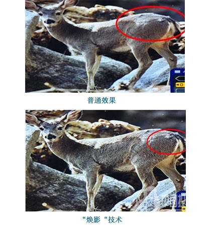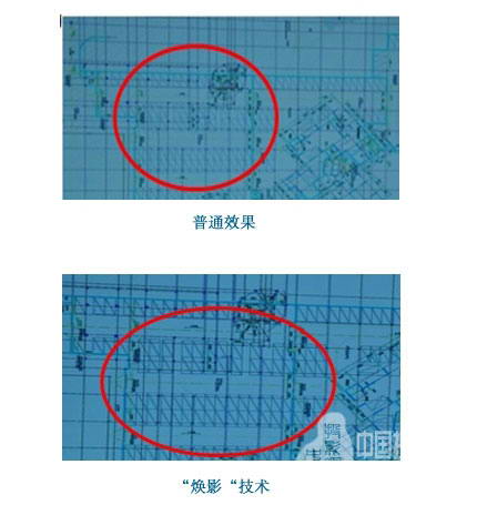 “焕影“技术在日立公司将独家具有的Accentualizer芯片图像清晰处理技术与HDCR高动态对比度提升技术的基础上进行了结合,针对对图像内暗场和细节进行自动调节,弥补了因灯泡亮度衰减带来的画面清晰度不足,从而给用户带来焕然一新的影像效果。