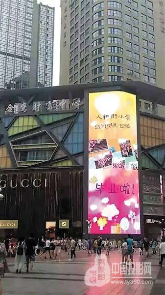 这块被安装在重庆市解放碑商业街金鹰财富中心,面积为353.89 平米的LED户外显示大屏,近日一改常规,暂停播放形形色色的商业广告,而播放了以小学生毕业为主题的“毕业留念辑”,把公众的目光从对高考分数查询、大学生毕业的关注中吸引过来,继而转移到了关注小学生毕业上来:LED大屏幕上,在那一个个朝气勃勃、纯真的笑脸间,我们似回到了那如歌的童真年代……