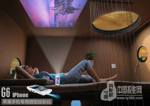 苹果iphone6系列手机嵌入美高G6微型投影机,立即变成100吋大屏电视,在客厅、在厨房、在厕所、在走廊,看100吋大屏电视。