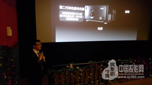 在活动现场,NEC公司为现场来宾宣讲NC1201L-A+电影机的诸多优势,如单色激光光源技术优、密封性好、放映画面效果出众等,图文并茂,浅显易懂,让现场来宾对产品、服务等都有了深入的了解。