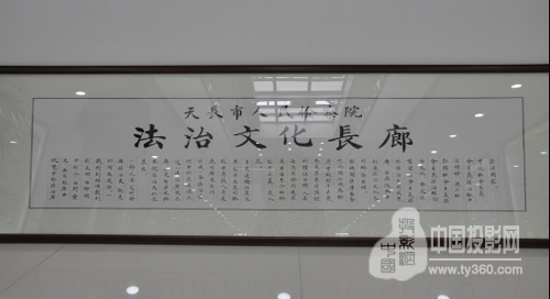 该院文化展示厅分为序厅、地域文化厅、传统文化厅、检察文化厅、文化强检厅等五个主题展区,设置灯光展板64块,用图近600幅,配置多媒体播放器和高清投影。整个展厅从一本书开始,到一支书写辉煌的笔结束,贯穿三条主线:一是展示线,;二是内涵线,;三是情趣线。门大厅东西两侧墙面悬挂醒目庄重的浮雕,分别为艺术造型各异、寓意深刻的99个“德”与100个“法”,展示内以“人品”、“华表”、“鼓舞”、“书写”造型突出展区主题。检察文化走廊悬挂社会各界书画、摄影家廉政作品。整个展区采取图文并茂、动静结合、声光电一体的艺术表现形式,较好地体现了文化内涵、突出了检察特色、实现了视觉效果和内容效果、科技与文化的有机统一,成为天长市检察文化建设的新亮点。