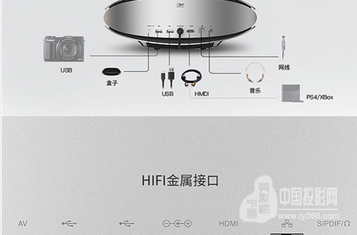 在接口方面,坚果智能家庭影院X1也提供丰富接口,包括HDMI、USB、AV in、RJ-45等等,多种扩展接口,让坚果X1成为家庭影音娱乐中心。