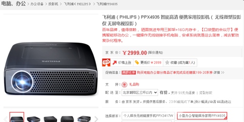 飞利浦PPX4935微投,采用DLP投影技术,拥有350流明亮度,100000:1的高对比度,带来出色的投影展示。1280*720标准分辨率,30000小时灯泡寿命,带来更高的性价比。目前,该机在就东网的销售价格为2999元,感兴趣的朋友可以多多关注一下。