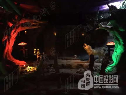 当游客走过冥河,触发红外开关,投影机将影像投射在两边的布景上,各种恐怖影像接踵而至,结合现场实景,感觉不能更真了。