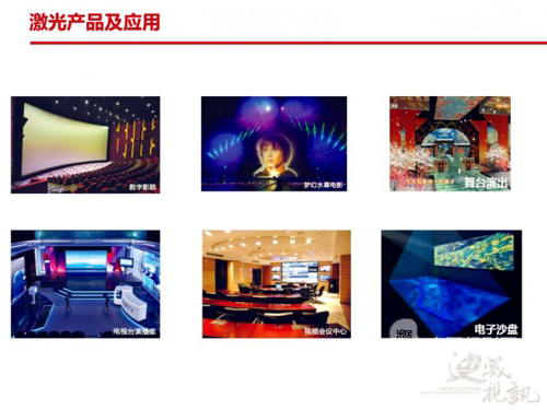 在技术创新和产品应用多方面,引领了全球激光产业的方向,先后推出了全球首款激光电影放映机、50000流明4K激光工程投影机、户外三防激光投影机、激光一体机、激光电视(背光源),并被广泛应用于指挥控制、展览展示、会议中心、户外幕墙、模拟仿真以及数码影院、家庭影院等领域,尤其在中高端行业应用市场更是取得不俗成绩。