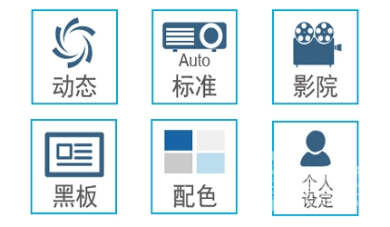 动态、标准、影院、黑板、配色板等多种投影模式,无论在明亮、还是黑板、白墙的环境下都可以将画面调整到最适合的色彩效果,享受逼真的精彩画面。