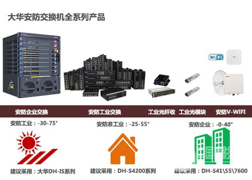 摄像机一般室外的工作温度是-30-70度,安防工业交换机工作温度是-40-75度,与摄像机可以组成非常好的搭档。