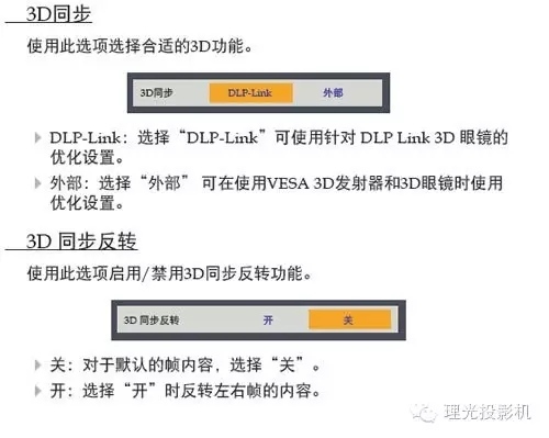 另外,理光LU5000/LW5000/LX550的全方位3D功能还支持3D同步反转,目前大部分3D影片的立体效果都是朝外扩展的,如果用户看到画面是向内收缩就需要选择3D模式下的“反转”功能,调节3D同步信号左右眼信号发射的顺序。