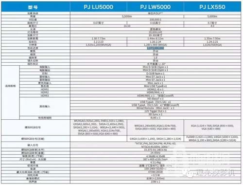 附:理光高端激光工程投影机PJ LU5000/LW5000/LX550参数