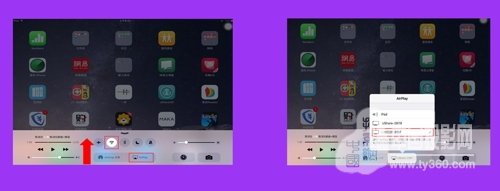 上拉手机菜单,将出现AirPlay图标;