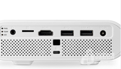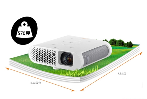 明基GS1 正面就可看出圆弧元素的应用,包括机身正面的散热孔以及机身两侧;至于投影镜头部分则为手动对焦的定焦镜头设计,仅需 1m 距离就能投影 60 寸画面,相信对于野外露营的用家而言,相当足够。此外,GS1 具备最高 300 流明输出亮度,LED灯泡寿命长达2万小时,相等于可观赏1万部电影,而投影晶片则具备HD高解析画质。
