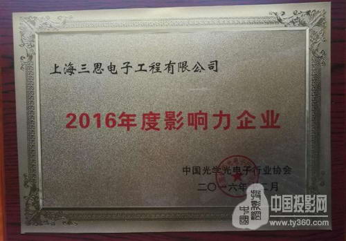 2016年12月6日,由中国光学光电子行业协会主办的2016年度中国光电行业优秀企业颁奖典礼在北京落下帷幕。上海三思凭借在光电行业突出的影响力以及持续创新能力,摘得2016年度中国光电行业“影响力企业”及“持续进步企业”两大荣誉。