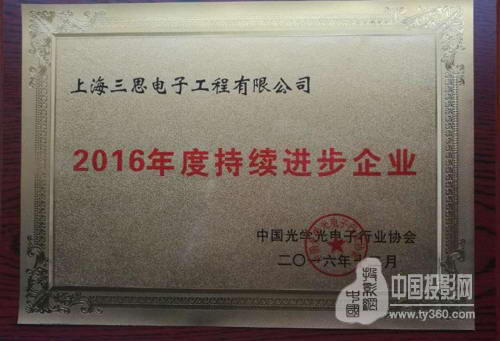 三思荣获2016年度中国光电行业“持续进步企业”大奖