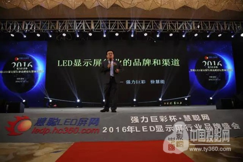 慧聪LED显示屏行业高峰论坛暨颁奖盛典,不仅是品牌的盛会,更为重要的是,它已经发展成为年度LED显示屏行业思想的盛宴!本届盛典以“品牌力量,渠道天下”的主题,活动现场,LED显示屏行业渠道建设标杆企业,厦门强力巨彩光电科技有限公司总经理徐慧能先生现身说法,带来了一场精彩的“论LED显示屏行业的品牌与渠道”主题演讲。