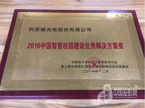 利亚德荣获“2016中国智慧校园建设优秀解决方案奖”