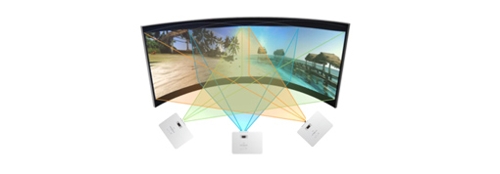 在专业工程应用中,“拼接融合”和“叠加”是最常见的方案,F系列对此进行了针对性的设计。首先,它支持融合与曲面变形功能,融合数量无限制,可以打造超大尺寸画面及弧幕方案。