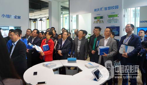 开幕式后,众位领导和嘉宾受邀参观了产业城内的展区。希沃展区位列其中,向来宾们展出了完整的智慧教育整体解决方案,并通过一个简要的小视频,将对未来师生生活的畅想与实践展现地淋漓尽致。现场的嘉宾和专家指出,作为教育装备产业中重要的一环,企业自身的技术实力和发展愿景尤为重要,希沃潜心研发、敢于创新和整合的实力令人惊艳和称道。