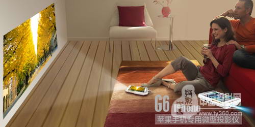 美高G6苹果专用微型投影仪,采用人性化操作设计,内置电池,专用苹果线连接,随身携带,免接电源,即用即投。