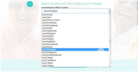 4. 设置希望母亲收到问候的具体时区/时间(包括全世界的时区,中国时区可选上海“Asia/Shanghai”);