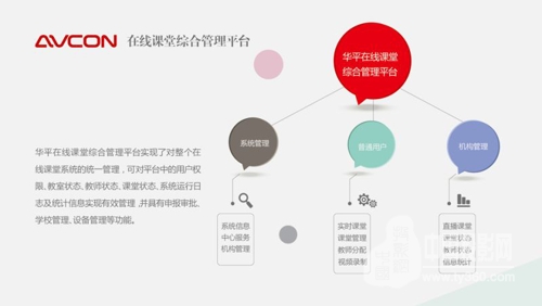 本届展会,华平展出的全新升级的在线课堂整体解决方案,为用户提供在线教学、在线教研、在线活动、在线监管这四大应用。除了满足最核心的“在线教学”外,“在线教研”和“在线活动”为学校提供了更丰富的拓展应用,包括:在线评课、在线观摩、在线备课、视频会议、远程培训、远程沙龙等。而“在线监管”则为教育主管部门提供了一个综合管理平台,它囊括了课堂监管、资源管理、教学分析等功能。通过平台,省、市县教育局,学校管理人员及老师等,都能更实时、快捷、直观地了解在线教学情况。