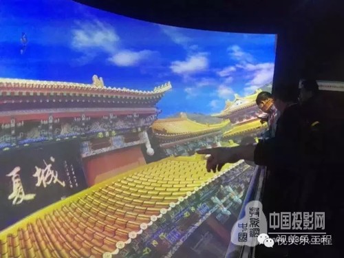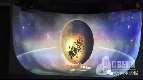 由于是U型多曲面显示画面,在视觉冲击上是占据非常重要的位置。该幕布将根据尺寸要求先在现场使用木工板将U型框架搭建成型,再通过专业技术工种将板面光滑处理,达到无凹凸感为止。最后由幕布厂家在现场进行模板喷漆处理从而达到投影显示高增益效果,确保画面能完美的还原出来,给体验者最大的视觉冲击。