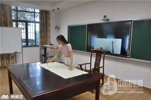 书法绘画训练室:老师的书写以特写画面在大屏上呈现