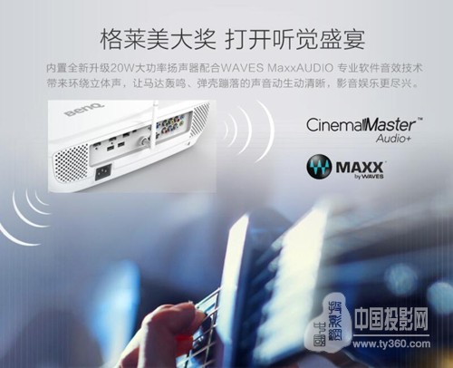 为了进一步给消费者带来美好的视听享受,明基智能投影机i720还配备了全新调校的20W大功率扬声器,采用素有“音乐界格莱美”之称的MaxxAudio声音增强引擎,通过整合心理声学算法,针对看电影、玩游戏、看球赛等不同使用场景,分别强化高音和低音,创造立体感十足又还原精彩细节的声效。而如果你的家里已经有家庭影院5.1音响设备,只需要一根HDMI线材连接功放。i720具备HDMI ARC(音频回传)功能,无需额外的音频传输线,就可以享受影院级别的震撼音效!