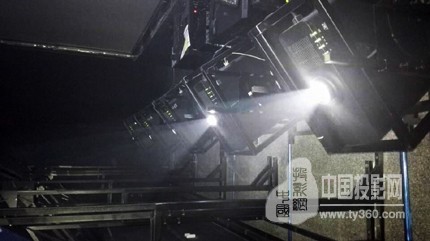 在郑州铁路局办公楼大厅的显示墙上,可以看见正在播放的精彩画面,但是却很难发现投影设备。绕过幕布后,会发现5台紧致轻巧的松下PT-FRZ68CL激光投影机正在努力地工作着。