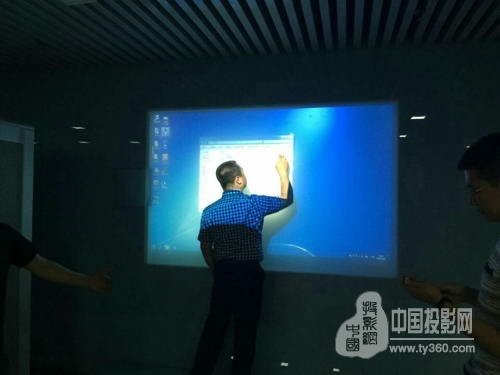 触控投影部分采用7500LM工程投影机,安装在天花板之上,倾斜向下投射在钢化玻璃触控屏幕上,与液晶拼接墙相互对应,用于会议或展示的实时操作演示,让与会者参与其中,增强用户的互动体验。