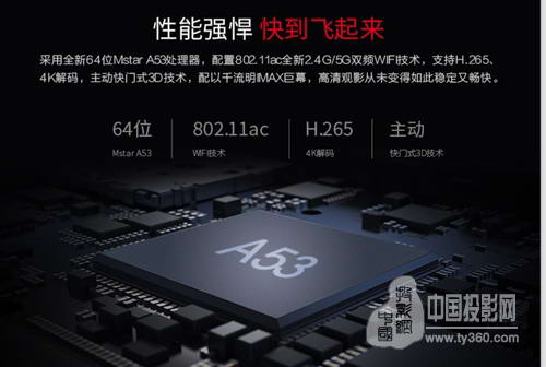 先来看看酷乐视S3基本配置:S3采用德国欧司朗全新高亮P1A LED光源,亮度经“国家数字音视频及多媒体产品质量监督检验中心”检测高达1081ANSI流明,搭载德州仪器0.45"1280×800高清显示芯片(支持1080P/4K);支持自动对焦/动态实时对焦、手势遥控、主动式3D功能,投射比为短焦1.2,想要获得100英寸画面仅需2.65米;配置全新64位A53智能芯片,Mali-T720 3D图像引擎,影院级色彩调校系统,保证了白天夜晚不同环境的高品质画质输出;配置惠威HiFi音响,支持蓝牙音响功能/SPDF同轴音频输出;创新采用壁挂式投影技术,搭载DTMB数字电视接收系统,无需网络免费看正版电视。可以看到,相较于同类产品,酷乐视S3从画质到声音到用户体验都进行了颠覆性提升。