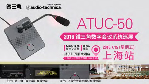 鐵三角 (大中华) 有限公司力力捧新品 ATUC-50 数字会议系统领跑全国巡展的首发站点,于 7 月 15 日(星期五)14:00 在上海扬子江万丽大酒店启程,此站同由鐵三角扩声工程音频话筒产品上海地区代理理商-上海今天音响器材有限公司协办。