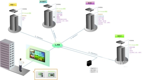 内置信息管理模块可以轻松实现大系统中的各种设备(如计算机、便携设备、显示屏等)的增加、删减、改动和查看及统计等系统设备管理功能。集群管理软件系统通过主机网络对投影、灯光,音视频等系统远程获取设备信息(开关机、故障、运行状态、系统参数),从而对设备信息进行收集和统计,用户可以实时获取各个房间、教室设备运行状况。信息管理系统可以与数据库服务器无缝连接,管理人员能根据需要对设备数据进行增加、删减,报表统计。