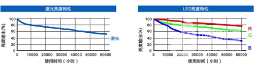 激光光源寿命长,亮度衰减缓慢,成本更低