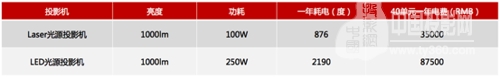 低功耗,同等亮度功耗仅为LED光源40%,激光投影一年节省电费52500元。