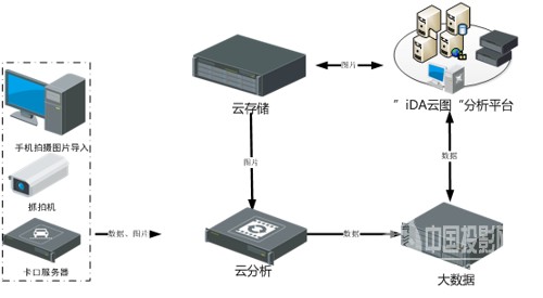 iDA涉牌违法车辆云分析系统由智能交通云分析系统、交通大数据管理分析系统、交通云存储系统以及iDA云图分析平台组成,以过车图片和数据为基础分析数据单元,在提供端到端的过车数据的分析、传输、存储和计算的同时,还提供丰富的业务实战功能,提供涉牌违法实战、精准找车以及其他基于智能分析的相关增值服务,包括涉牌违法实战、精准找车功能以及其他基于智能分析的相关增值服务功能。其处理流程如下:
