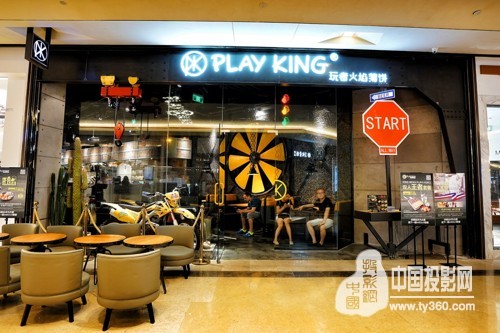 PlayKing餐厅在空间上呈现出浓重的欧式工业风——开放式厨房设计成旅行房车的造型,门口停放的重型机车、店内悬吊的发动机、墙上的风机扇叶,还有震撼的3D沉浸式投影……这些元素带给每一位顾客与众不同的画面感和体验感,因此深得年轻、时尚消费群体的喜爱。
