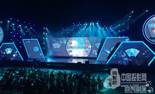 在多媒体舞美影像设计过程中,数虎图像结合不同的歌舞表演节目,如舞蹈《唱山歌》、中国风歌曲《西厢》、描述壮乡风情的歌舞《红果果》和《唱着山歌等你来》等,分别融入宜州文化、动感时尚等不同的图案元素和影像变化节奏,呈现人屏互动的完美演出。