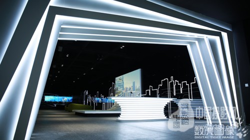 据数虎图像设计师介绍,“创•领”区域的无缝拼接LCD屏是可触摸的,参观者可以用手触控屏幕上的时间轴,以了解企业文化历程、项目介绍及未来蓝图,而且每一个版块都是单独呈现,让参观者在阅读浏览时兼顾娱乐、科技的互动体验感。