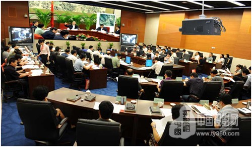 图5 激光视真系统应用于福建省政府会议大厅。因系统采用整屏投影技术,使大屏无缝显示,完美展现。