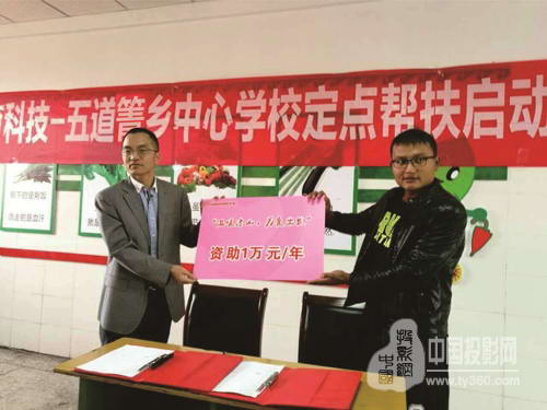 在“爱的奉献”的旋律中,长虹教育科技现场与凉山州教育局签订了五道箐乡中心学校签订了定点帮扶协议,同时,还资助凉山州彝族大学生读书期间的所有费用。五道箐乡中心小学校向捐赠的长虹教育科技、四川文轩科技、成都瑞德利科技、四川博瑞星云等企业赠送了“精准扶贫,心系凉山”、“关爱莘莘学子,情系凉山教育”的锦旗。