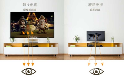 整一套家庭影院投影机,躺着看大片,是很多影音爱好者的梦想。试想下这样的场景:窗外雨雪纷飞,屋内暖意融融,你正与家人以各种非正儿八经的姿态,窝陷在柔软的沙发中,看一场对味儿的电影,你们可以随性而谈,也可以肆意哭笑,甚至还可以撸个串……这是在任何电影院都得不到的闲适和美好,但明基智能超投电视可以帮你做到。得益于TIR反射光学构架和时新的DLP投影技术,明基超投电视只需要49cm宽的空间距离,放在电视柜上,就能轻松投射100吋1080P高清大屏画面,在家也能好好看一场电影。且它无须吊装调试,开箱即用,简单方便,全家老小都会用。相比一般家用投影机,简直是傻瓜操作啊!