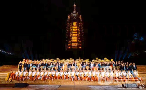 报恩盛典:78.2米高塔身3D投影,41.8米*10.6米最大尺寸佛龛墙投影区域,两部分舞台遥相呼应,呈现富有层次感的舞台表演