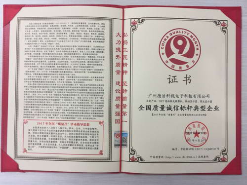 近期,DET德浩在由中国质量检验协会举办的“2017年全国“质量月”企业质量诚信倡议专题活动”中荣获:“全国视听/教育行业质量领先品牌、全国质量诚信标杆典型企业、全国质量检验稳定合格产品”荣誉称号。